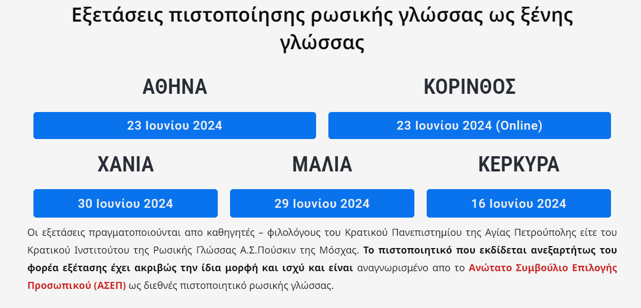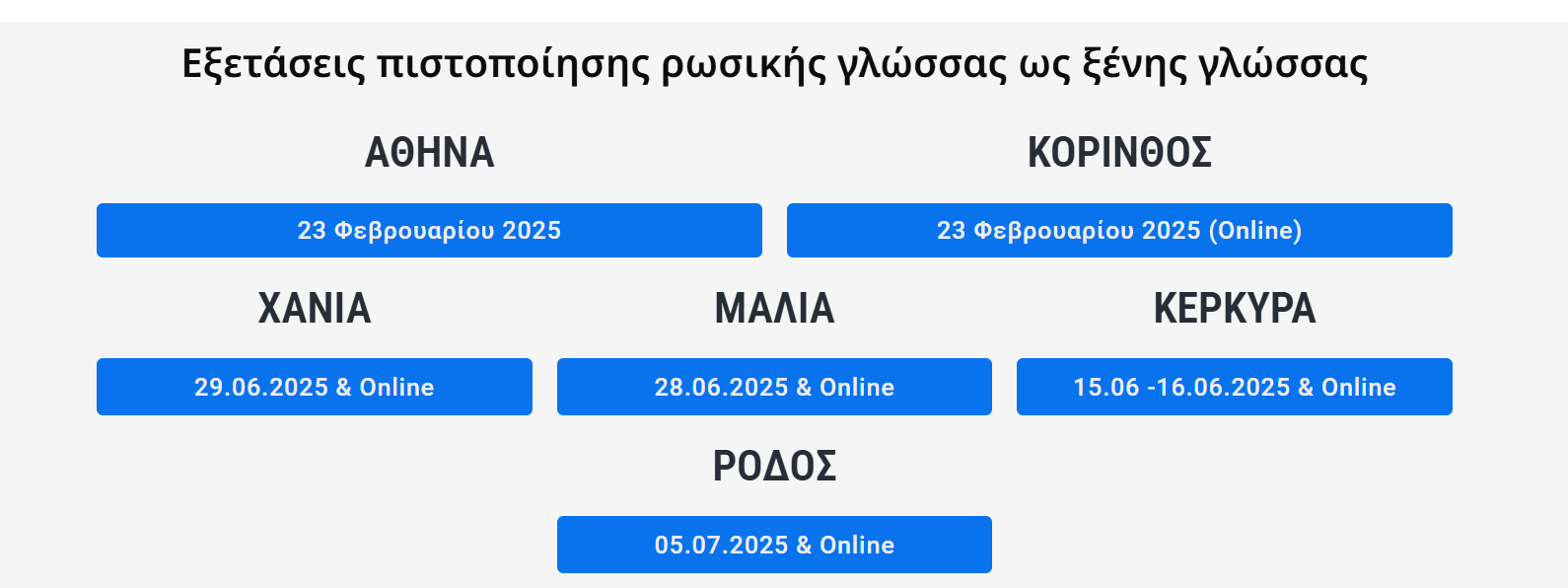 Εξετάσεις πιστοποίησης ρωσικής γλώσσας ως ξένης γλώσσας στην Ελλάδα 2025